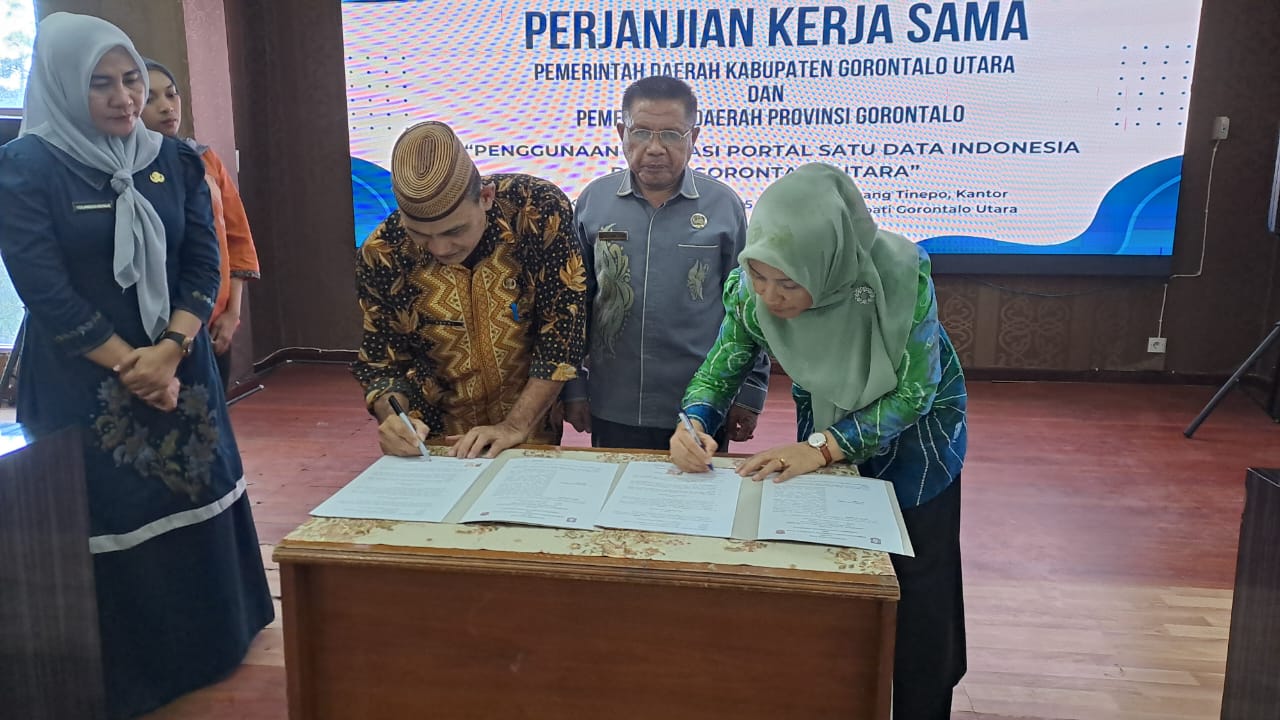 Ruang Gorontalo– Upaya menghadirkan data yang akurat, mutakhir, dan terintegrasi di Gorontalo kini memasuki babak baru. Pemerintah Provinsi (Pemprov) Gorontalo bersama Pemerintah Kabupaten Gorontalo Utara resmi menandatangani perjanjian kerja sama (PKS) pemanfaatan aplikasi Satu Data Indonesia (SDI).