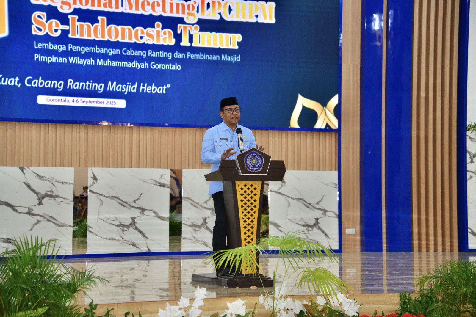 Ruang Gorontalo– Sekretaris Daerah (Sekda) Provinsi Gorontalo, Sofian Ibrahim, menegaskan pentingnya menjaga persatuan dan kesatuan di tengah dinamika kehidupan berbangsa dan bernegara. Hal itu disampaikannya saat membuka Regional Meeting Lembaga Pengembangan Cabang Ranting dan Pembinaan Masjid (LPCRPM) Se-Indonesia Timur yang digelar di Gedung Indoor David Bobihoe Akib, Universitas Muhammadiyah Gorontalo (UMGO).